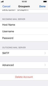 Press Host Name and key in the name or IP address of your email provider's outgoing server. Please note that if you can't send email messages when using your email provider's outgoing server, key in smtp.vodafone.net.au (Vodafone's outgoing server).
