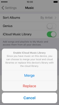 Press Merge to merge the music library on your phone with the iCloud Music Library.