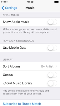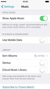 Press the indicator next to "iCloud Music Library" to turn on the function.