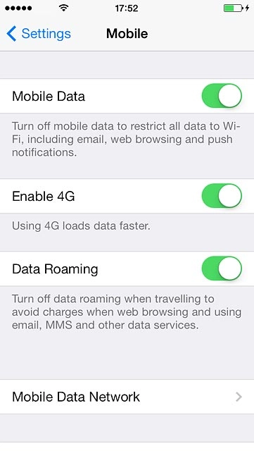 Select network mode - Apple iPhone 5s (iOS7)
