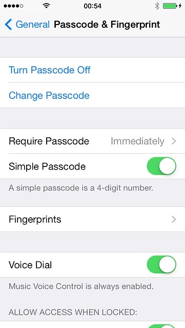 Press the indicator next to "Passcode Unlock" until the function is turned on.