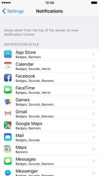 Press the indicator next to "Allow Notifications" to turn notifications for the selected application on or off.