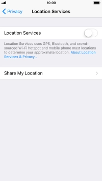 Press the indicator next to "Location Services" to turn the function on or off.