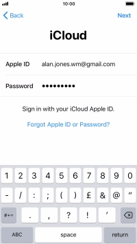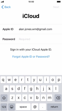 Press the field next to "Apple ID" and key in the username for your Apple ID.