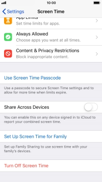 Press the indicator next to "Share Across Devices" and follow the instructions on the screen to turn total Screen Time across all of your devices on or off.