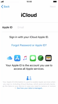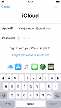 Press the field next to "Apple ID" and key in the username for your Apple ID.