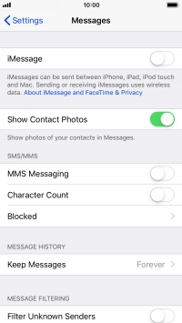 Press the indicator next to "iMessage" to turn on the function.