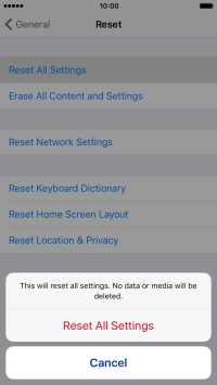 Press Reset All Settings. Wait a moment while the factory default settings are restored.