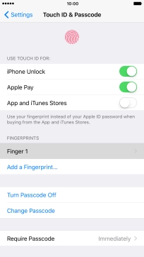 You can set your phone to use your fingerprint as phone lock code or to authorise iTunes and App Store purchases. To use Touch ID, you need to turn on the phone lock code.