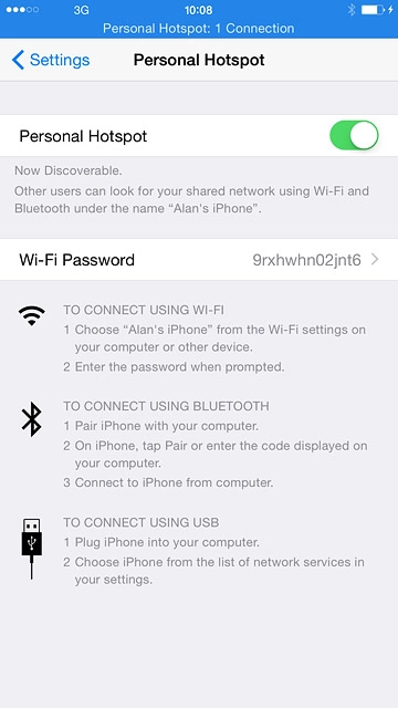 Press the indicator next to"Personal Hotspot" until the function is turned on.
