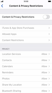Press the indicator next to "Content & Privacy Restrictions" and follow the instructions on the screen to select settings for content and privacy restrictions.