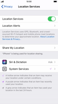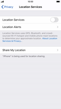 Press the indicator next to "Location Services" to turn the function on or off.