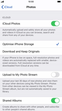 Press the indicator next to "Upload to My Photo Stream" to turn the function on or off.