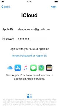 Press the field next to "Apple ID" and key in the username for your Apple ID.