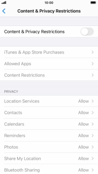 Press the indicator next to "Content & Privacy Restrictions" and follow the instructions on the screen to select settings for content and privacy restrictions.