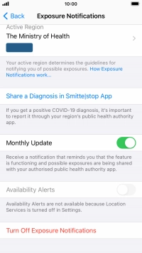 Info: To turn on Exposure Notifications again, open the exposure app and follow the instructions on the screen to turn on the function.