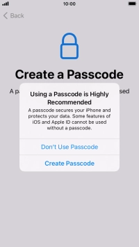 Follow the instructions on the screen to turn on use of phone lock code or press Don't Use Passcode.