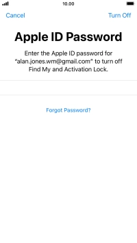 Key in the password for your Apple ID and press Erase iPhone. Wait a moment while the factory default settings are restored. Follow the instructions on the screen to set up your phone and prepare it for use.