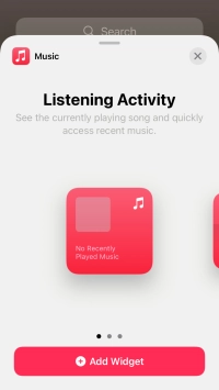 If the required widget is not displayed on the list, press the search field and follow the instructions on the screen to find the required widget.