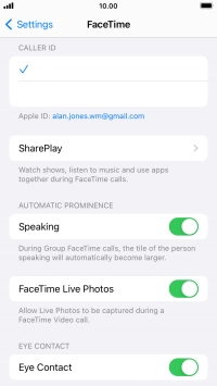 Press the indicator next to "FaceTime" to turn the function on or off.