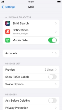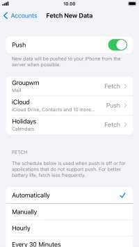 Press the required email account and follow the instructions on the screen to select settings for the specific account.
