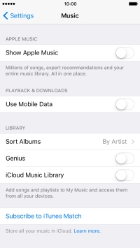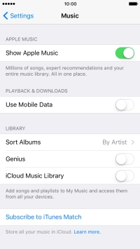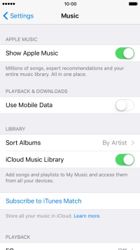 Press the indicator next to "iCloud Music Library" to turn on the function.