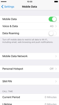 Press the indicator next to "Mobile Data" to turn the function on or off.