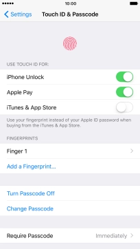 If you turn on the function, you can use your fingerprint to authorise Apple Pay purchases.