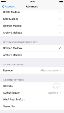 Press the required email account and follow the instructions on the screen to select settings for the specific account.