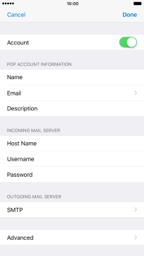 Press the required email account and follow the instructions on the screen to select settings for the specific account.