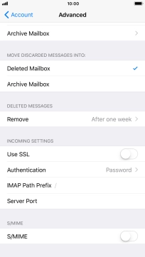 Press the required email account and follow the instructions on the screen to select settings for the specific account.