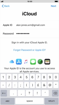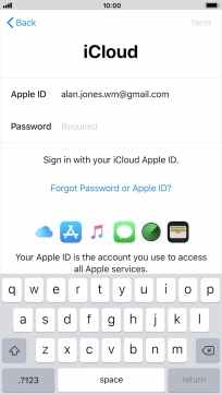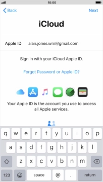 Press the field next to "Apple ID" and key in the username for your Apple ID.