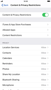 Press the indicator next to "Content & Privacy Restrictions" and follow the instructions on the screen to select settings for content and privacy restrictions.