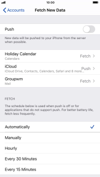Press the required email account and follow the instructions on the screen to select settings for the specific account.