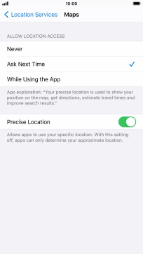 Press the indicator next to "Location Services" to turn the function on or off.