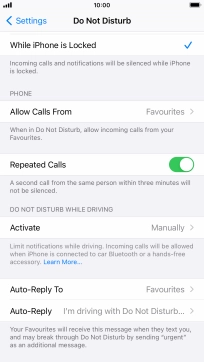 Press Auto-Reply and follow the instructions on the screen to edit the automatic message that Do Not Disturb While Driving is turned on.