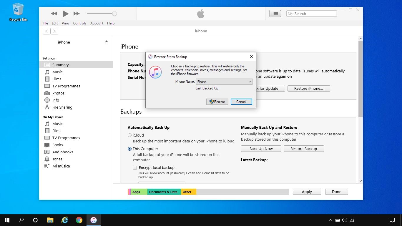 2. Restore iTunes backup
