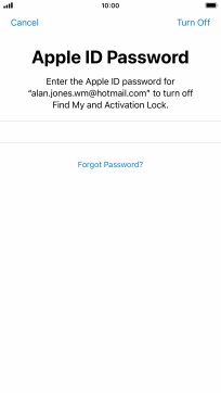 Key in the password for your Apple ID and press Erase iPhone. Wait a moment while the factory default settings are restored. Follow the instructions on the screen to set up your phone and prepare it for use.