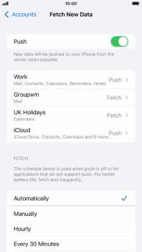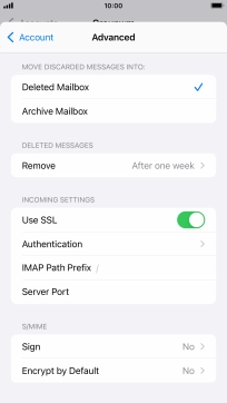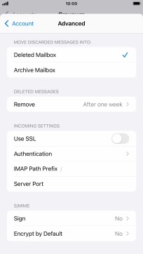 Press the required email account and follow the instructions on the screen to select settings for the specific account.