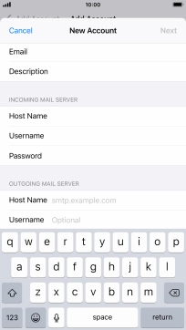 Press Host Name and key in the name of your email provider's incoming server.