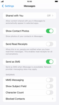 Press the indicator next to "Send as SMS" to turn the function on or off.