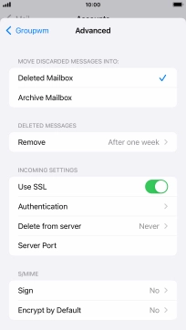 Press the required email account and follow the instructions on the screen to select settings for the specific account.