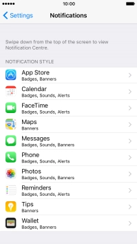Press the indicator next to "Allow Notifications" to turn notifications for the selected application on or off.