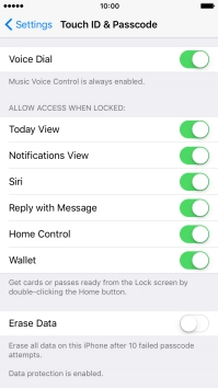 Press the indicator next to "Erase Data" to turn the function on or off.