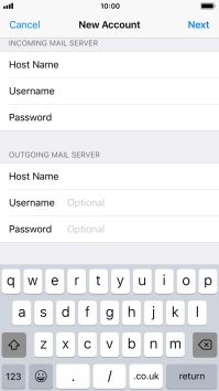 Press Host Name and key in the name of your email provider's outgoing server. Please note that if you can't send email messages when using your email provider's outgoing server, key in smtp.vodafone.net.au (Vodafone's outgoing server).