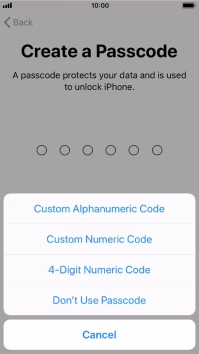 Follow the instructions on the screen to turn on use of phone lock code or press Don't Use Passcode.