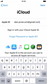 Press the field next to "Apple ID" and key in the username for your Apple ID.