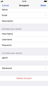Press Host Name and key in the name or IP address of your email provider's outgoing server. Please note that if you can't send email messages when using your email provider's outgoing server, key in smtp.vodafone.net.au (Vodafone's outgoing server).