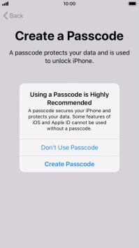 Follow the instructions on the screen to turn on use of phone lock code or press Don't Use Passcode.
