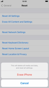 Key in the password for your Apple ID and press Erase. Wait a moment while the factory default settings are restored. Follow the instructions on the screen to set up your phone and prepare it for use.